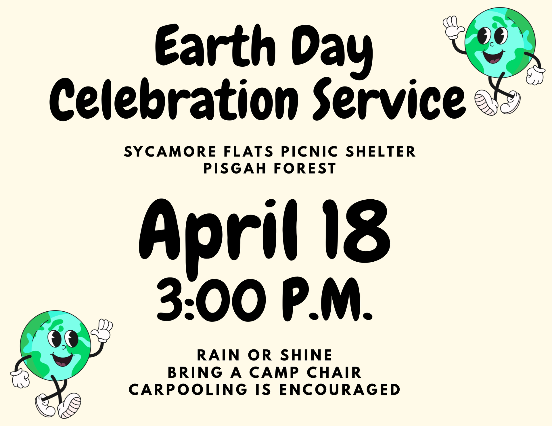 This Saturday, April 18th, you and your family are invited to join all of our CrossTown churches along with some other faith partners in an Earth Day celebration service. The service will take place at the picnic shelter at Sycamore Flats at 3pm. You are encouraged to bring a lawn chair. The service will take place rain or shine.