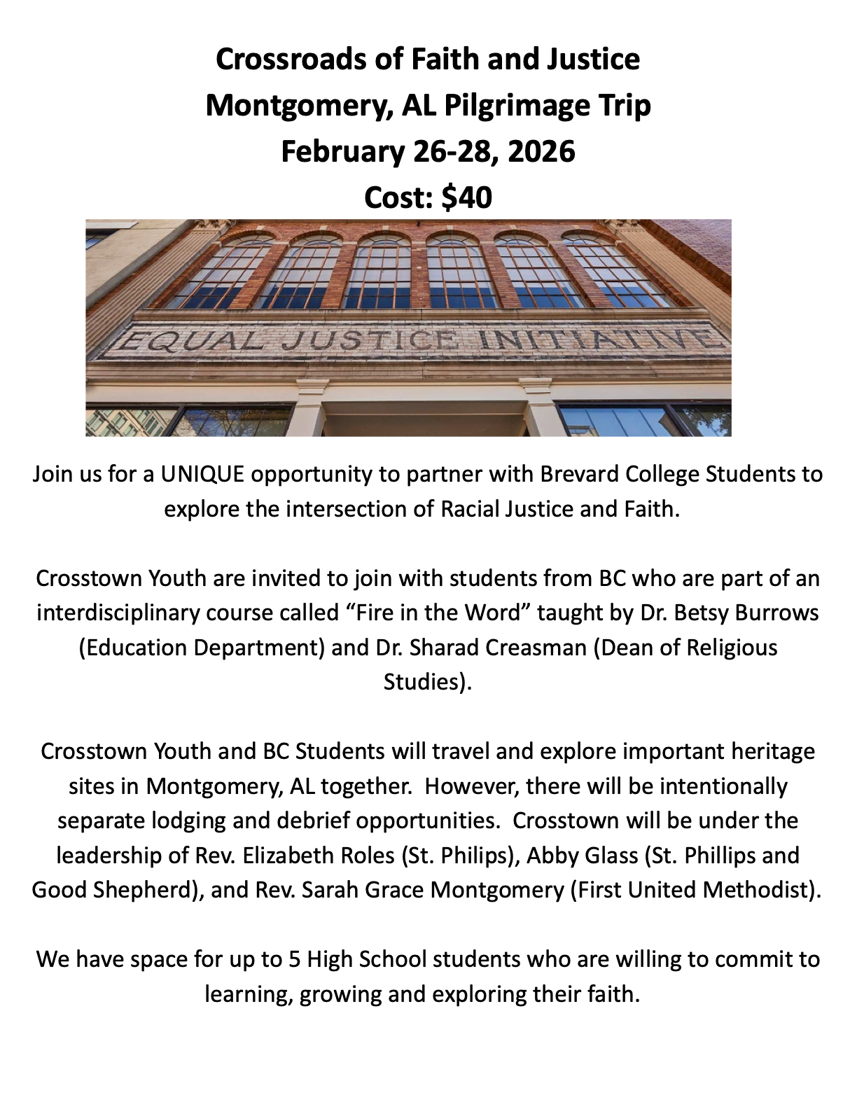 We hope everyone has enjoyed the extra days off school and have stayed safe and warm. This Sunday, February 8, CrossTown will meet at St. Philip's from 5-6:45pm. In honor of the super bowl, we will have lots of appetizers for dinner. We hope you can join us for a lesson, games, and dinner.