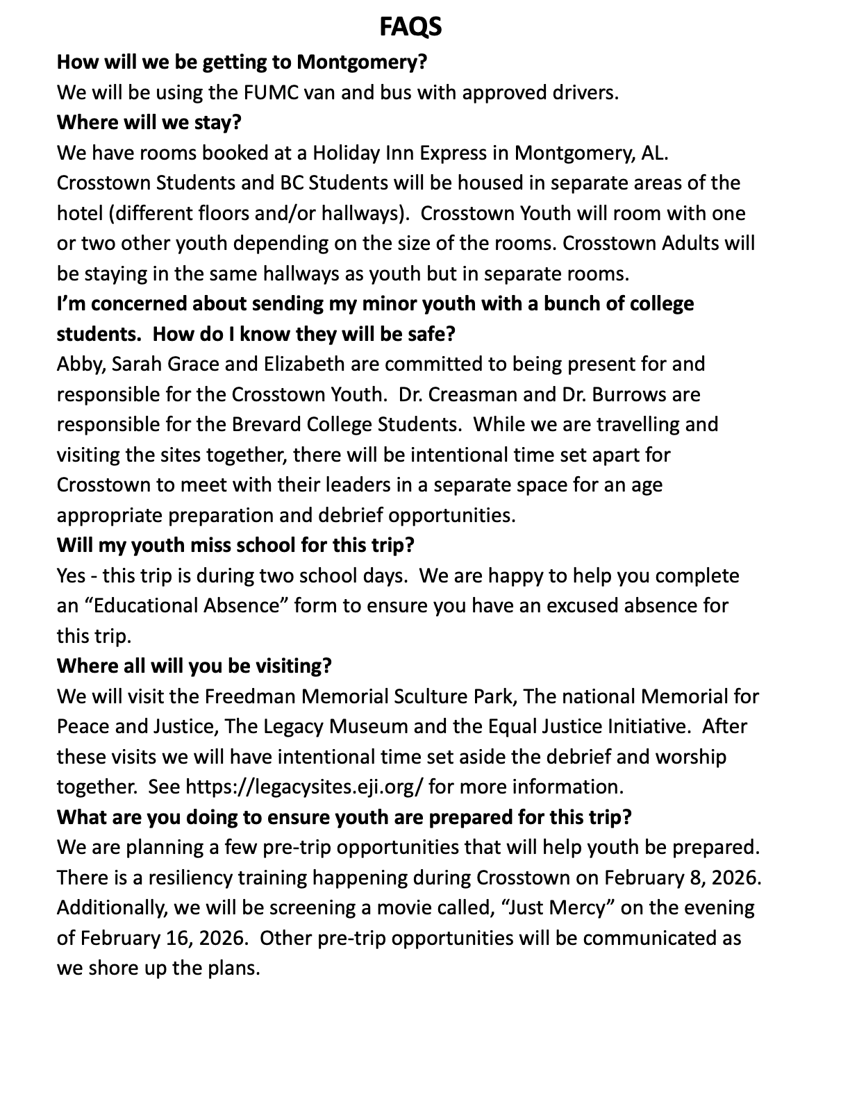 High schoolers: Please mark your calendar for our next high school on Thursday, February 19th. We will meet at Zaxby's at 6:30pm. We hope to see you there!