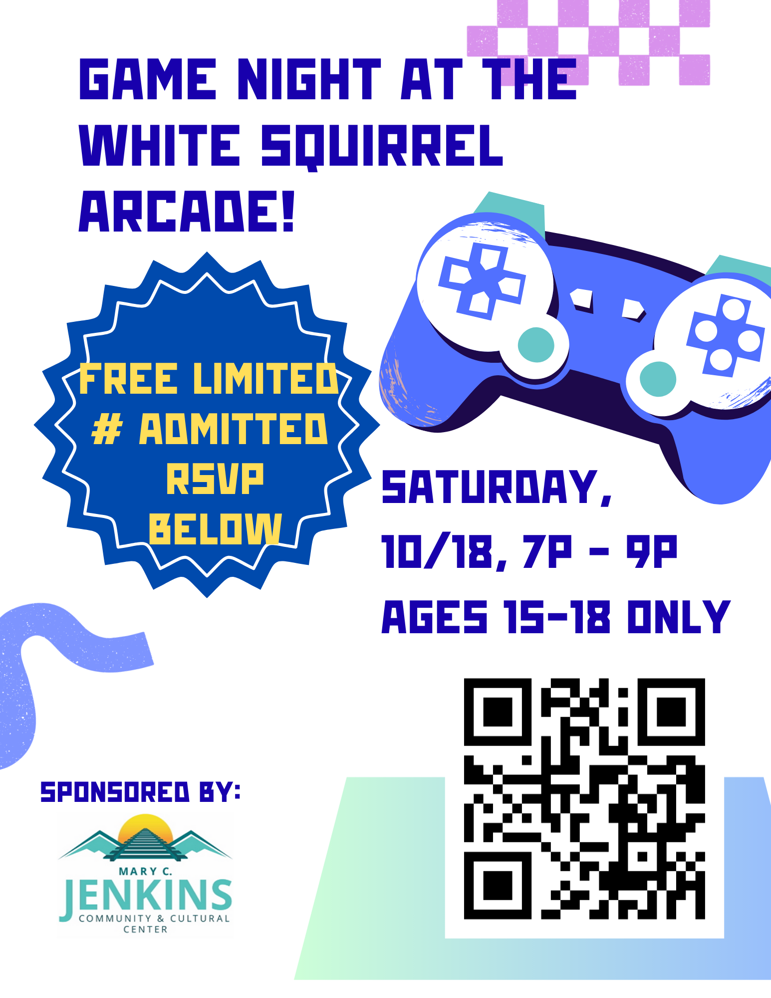 High schoolers: We hope you can join us on Wednesday, October 22 for dinner club. We will meet at Corky's at 6:30. Please bring $10 if you are able. All 15-18 year olds are invited to a free evening of fun at the White Squirrel Arcade on October 18. For more information and a link to reserve your spot, please see the attached flyer.