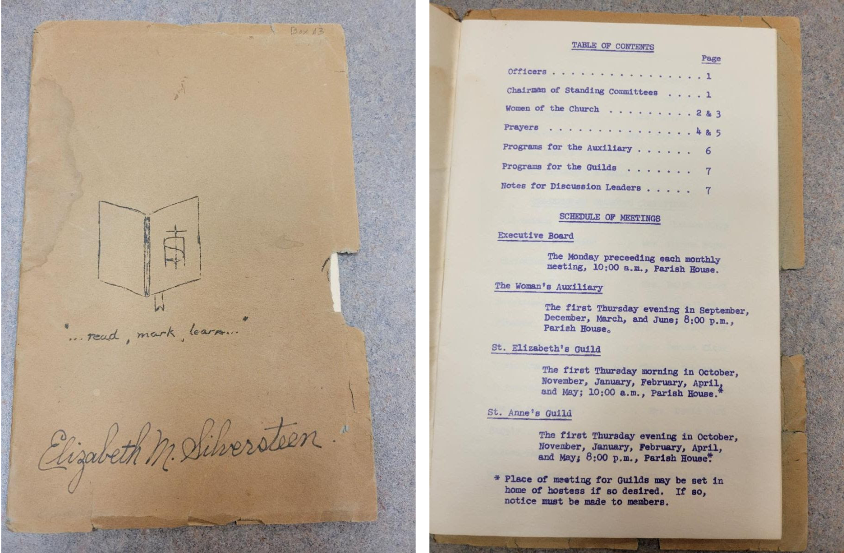 Photos: Cover of the Women's Auxiliary and Guilds' Handbook, and Table of Contents for the Women's Auxiliary and Guilds Handbook